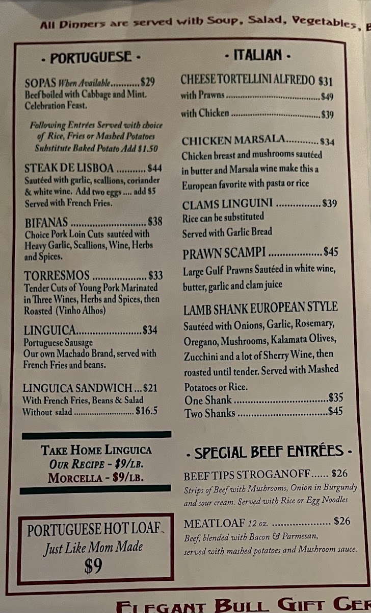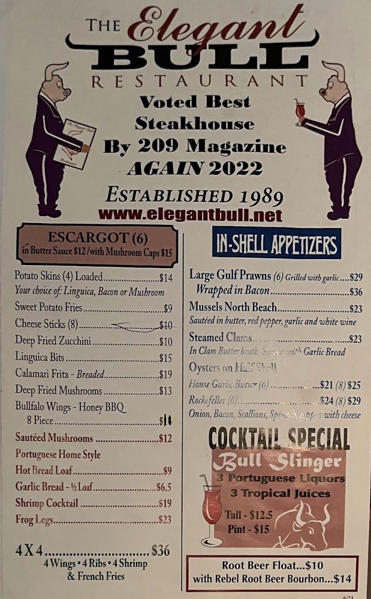 Elegant Bull Menu